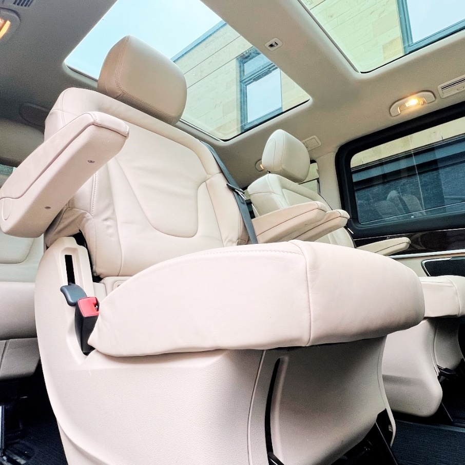 We use Mercedes-Benz V Class minivans. They are very comfortable and safe vehicles with a Euro N-Cap rating of 5 stars. They come with privacy glass, a panoramic sunroof, leather seats, dual-zone air conditioning and unlimited high-speed WiFi. Learn more about our vehicles.
